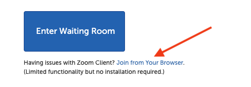Alternatively, participants can also join the session without downloading the Zoom application by clicking the "Join from Your Browser" button beneath the Enter Waiting Room button.