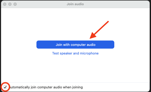 • TIP: Check the box next to "Automatically join computer audio when joining" before clicking "Join Audio by Computer" to avoid having to confirm this every time.