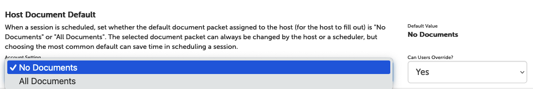 3b. To set the default packet assigned to hosts: Scroll to the option "Host Document Default" and click the drop down to select your default. The change will save automatically.