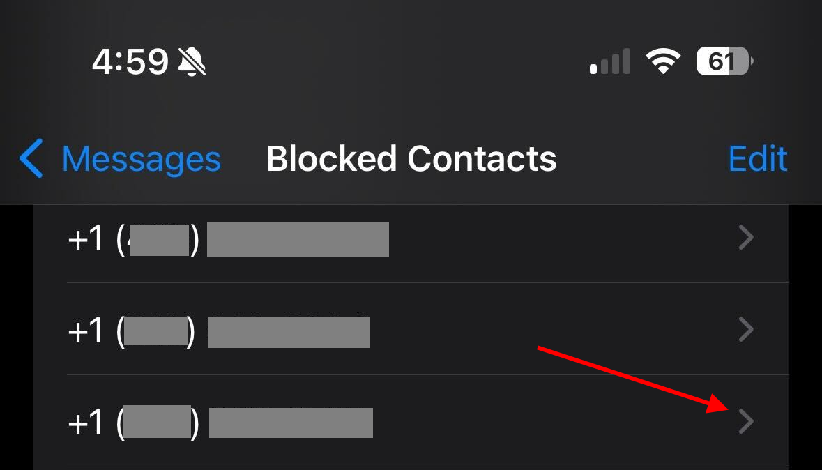 4. scroll down the list of blocked contacts, and tap or swipe left on a number in the list, then tap Unblock. Or tap Edit, then tap the Remove button the Remove button.