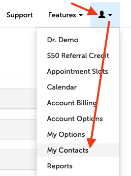 1. Once Display Names have been enabled for your account, click the profile icon in the upper right-hand corner and select "My Contacts" from the drop-down menu.