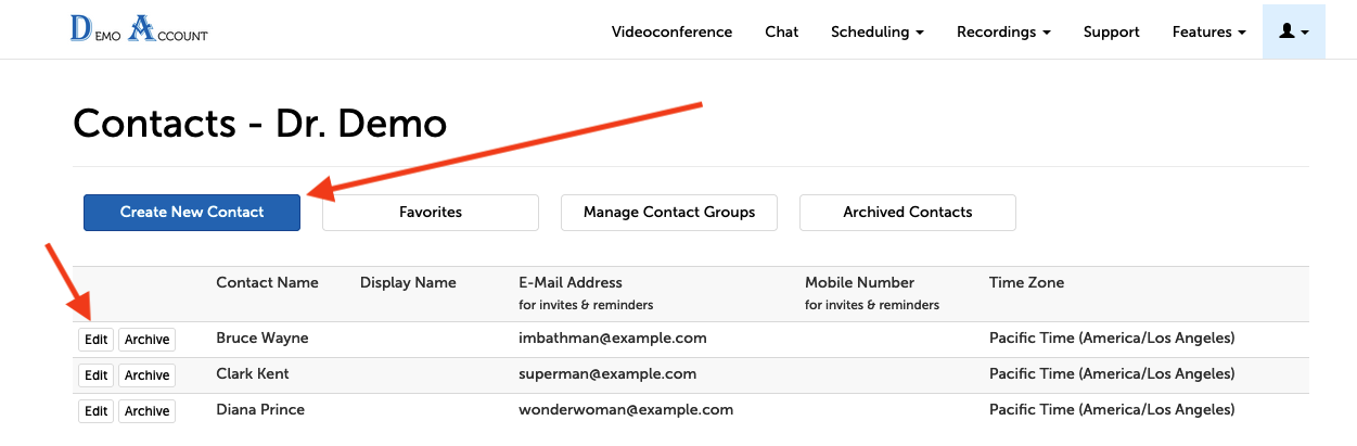 2. Select either "Create New Contact" or "Edit"